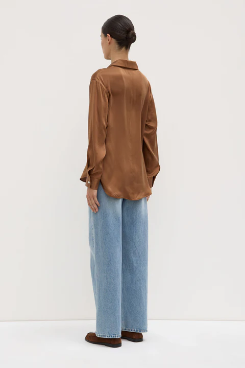 Relaxed fit collared shirt crafted from 100% silk. Features mother of pearl buttons, a centre-back seam and sleeve placket detailing.