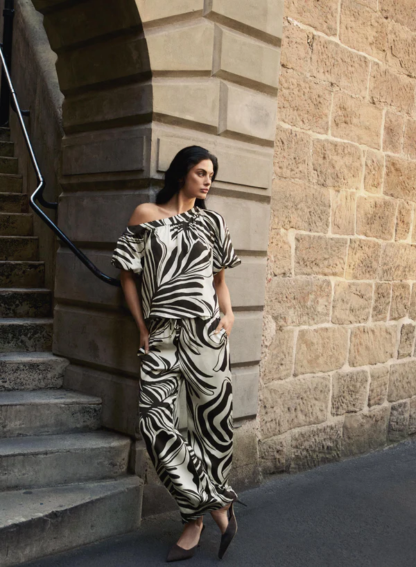 Esmaee Argyle Pant • Exclusive print on a luxe fabrication • Drawstring waist with elastic • Pockets at side • Relaxed leg • Full leg length • Mindfully created