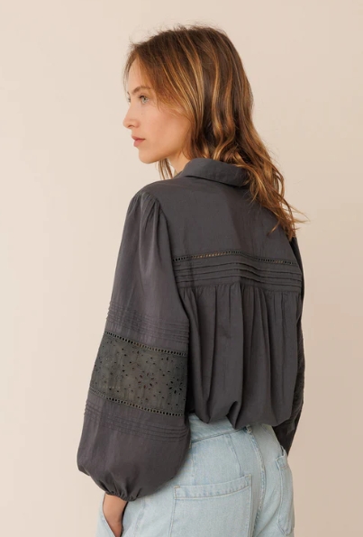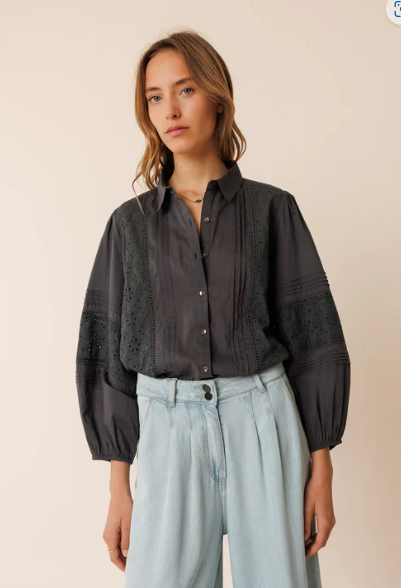 The puff sleeves and rubberized cuffs of this embroidered cotton voile shirt add a twist, while its relaxed fit ensures you feel comfortable on any occasion. The details in drawstrings and hemstitches give it a unique character that enhances any look.